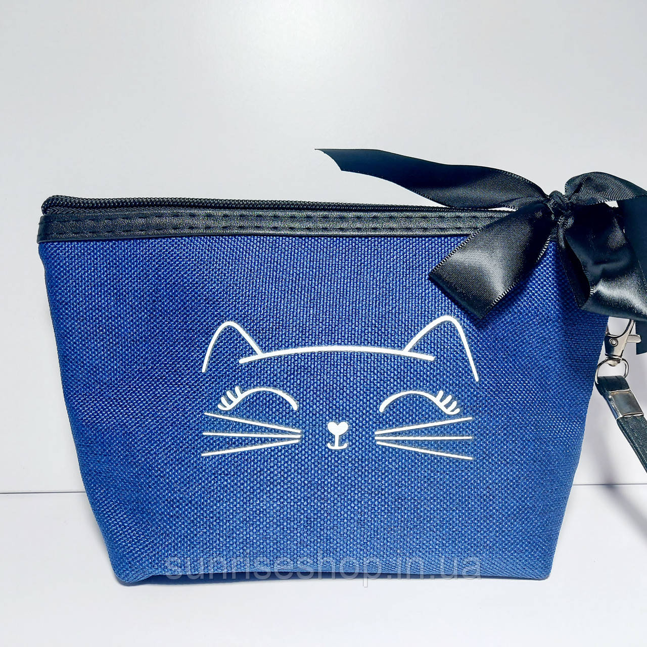 Жіноча стильна космнетичка з декором виконана з якісного текстилю. Всередині на підкладці, закривається на блискавку. Такий аксесуар, завдяки своїм розмірам, може використовуватися для повсякденного життя і нетривалих поїздок.